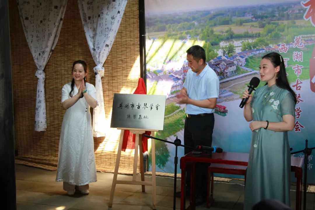 下午两点,在西河古镇上街46号举办了“芜湖市古琴学会西河古镇雅集”,音乐会开始前,由湾沚区红杨镇党委书记华中刚与安徽古琴学会常务副会长兼秘书长王徽宁为“芜湖市古琴学会西河古镇传习基地”揭牌,未来芜湖市古琴学会将与西河古镇共同打造这一传统艺术空间。