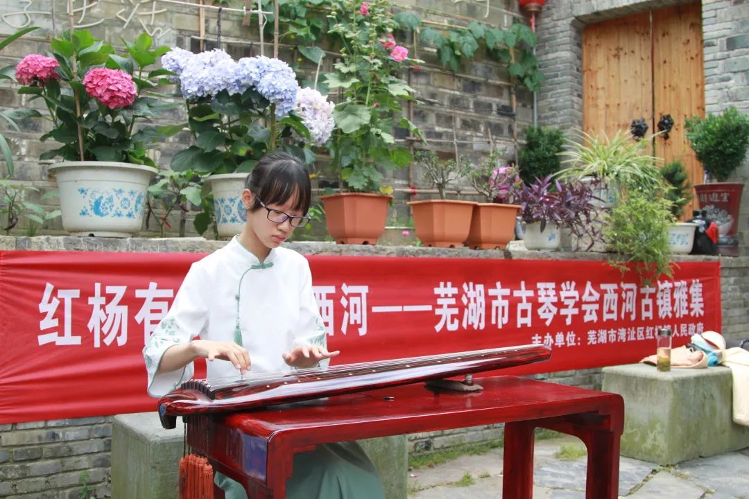 6月11日,恰逢中国“文化与自然遗产日”,为弘扬古琴艺术,由芜湖市湾沚区红杨镇人民政府主办,芜湖市古琴学会承办的“红杨有约,琴韵西河——芜湖市古琴学会走进西河”系列活动在西河古镇举办。在古镇用古琴演奏古曲,给现场的观众及游客带来一场艺术盛宴。